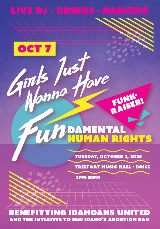 Girls Just Wanna Have Fundamental Human Rights Join us for a dance party in support of equal human rights and reproductive freedom in Idaho. This event is open to all who believe in equity, bodily autonomy, and the power of collective joy. Plus, all registered voters can add their name to the landmark Reproductive Freedom & Privacy Act, […]