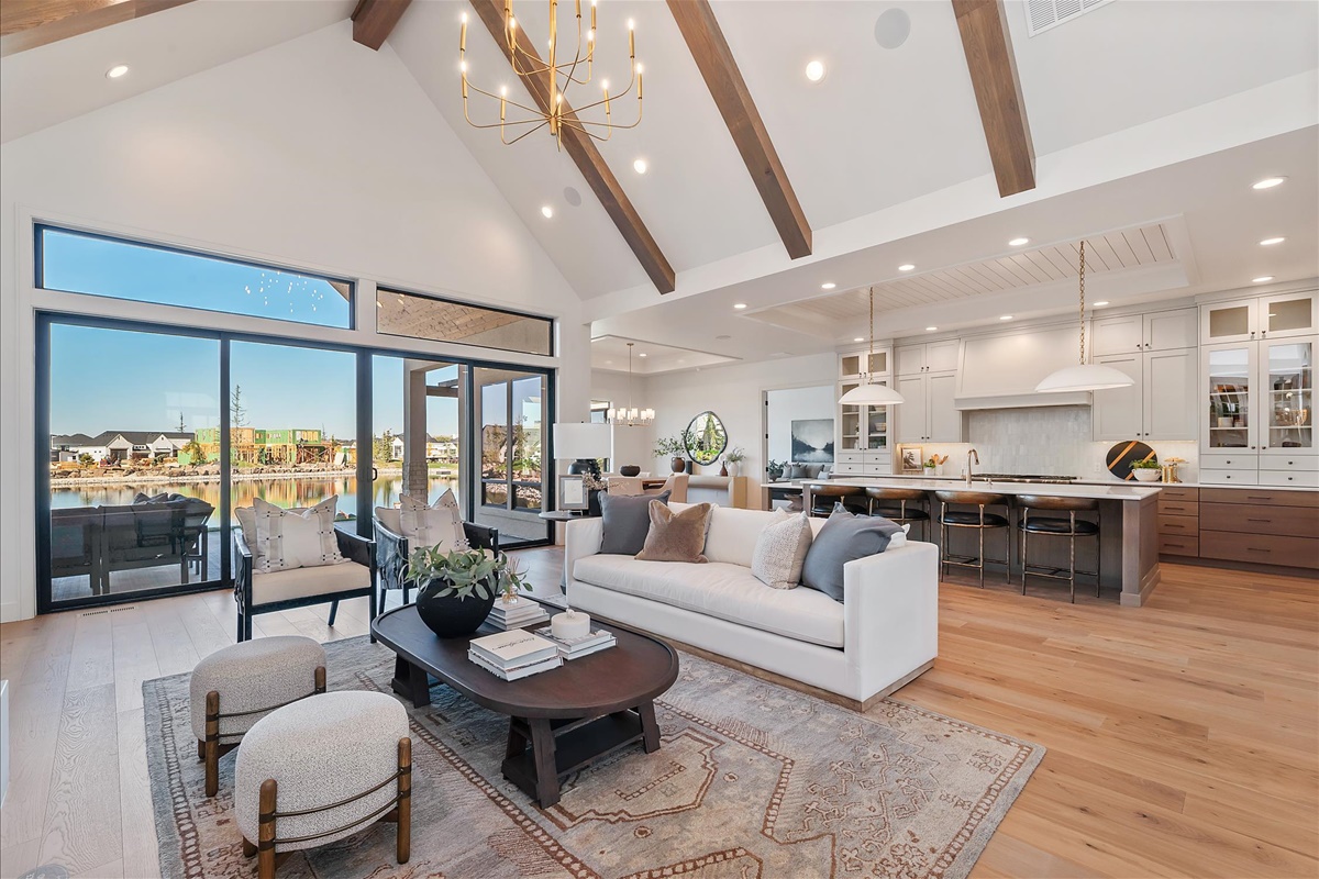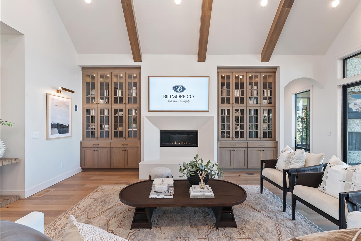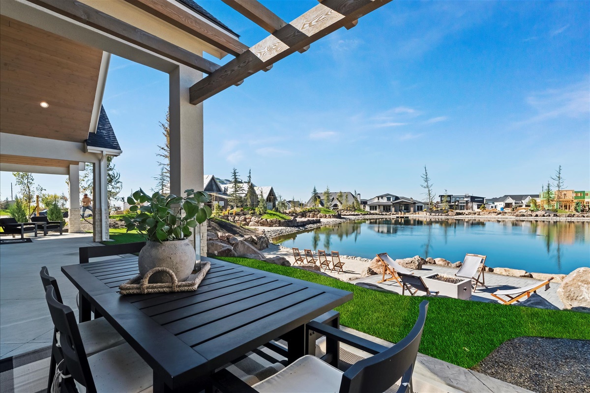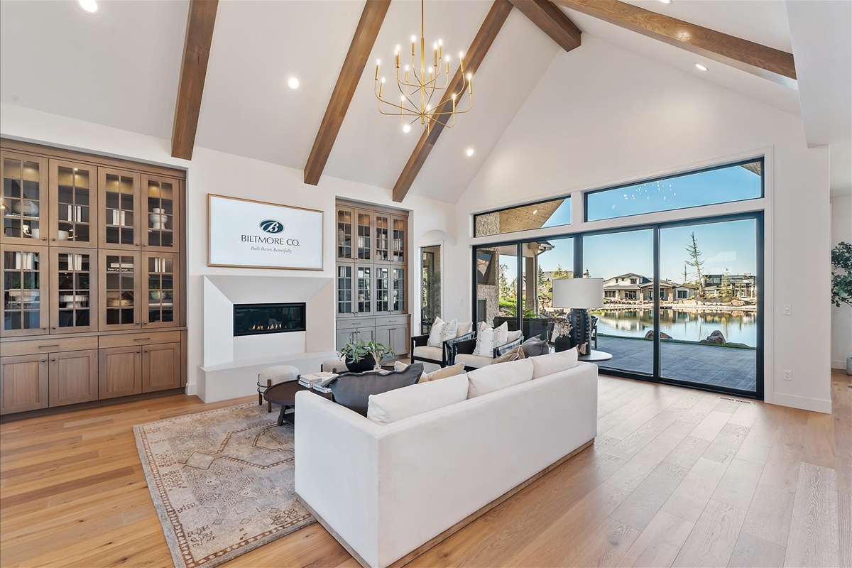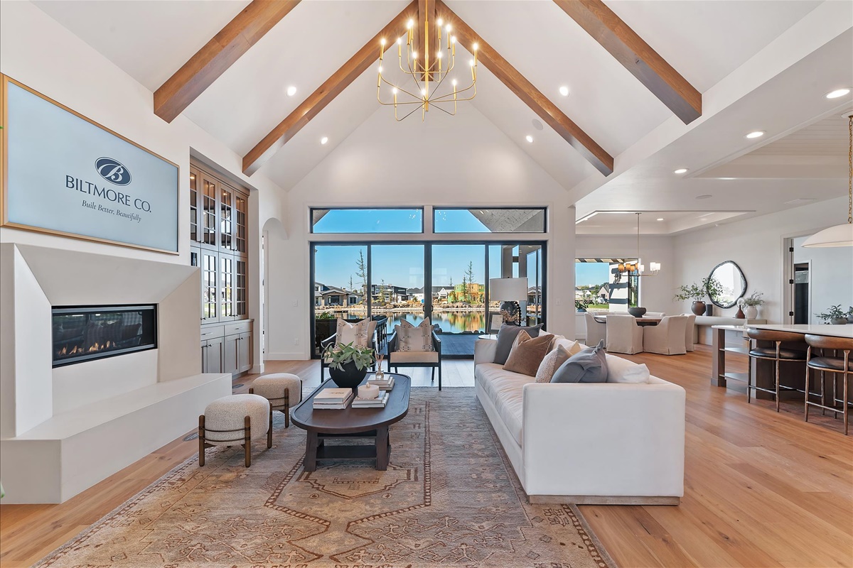 Welcome to The Presley – Biltmore Company LLC’s Fall Parade of Homes, a stunning waterfront residence and the largest single-story floorplan in Terra View! This luxury residence features vaulted ceilings in the great room, bonus room, and primary suite, creating an airy, spacious feel throughout. The gourmet kitchen is equipped with premium Thermador appliances and a show-stopping butler’s pantry. The primary suite includes his and her closets, with a hidden closet behind his side, and a spa-like ensuite featuring heated tile floors, a zero-threshold tiled shower, and a freestanding soaker tub. Guests will love the private suite with its own ensuite bathroom. The bonus room features a wet bar and an attached home gym with scenic views of the water. Enjoy the oversized garage spanning 1,770+ sq-ft with a 45’ deep RV bay and EV charging station. Relax or entertain on the expansive covered patio overlooking the peaceful waterfront. A truly exceptional home in every detail.