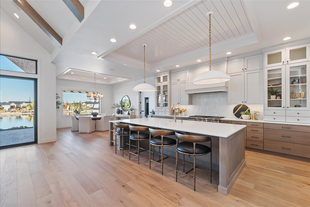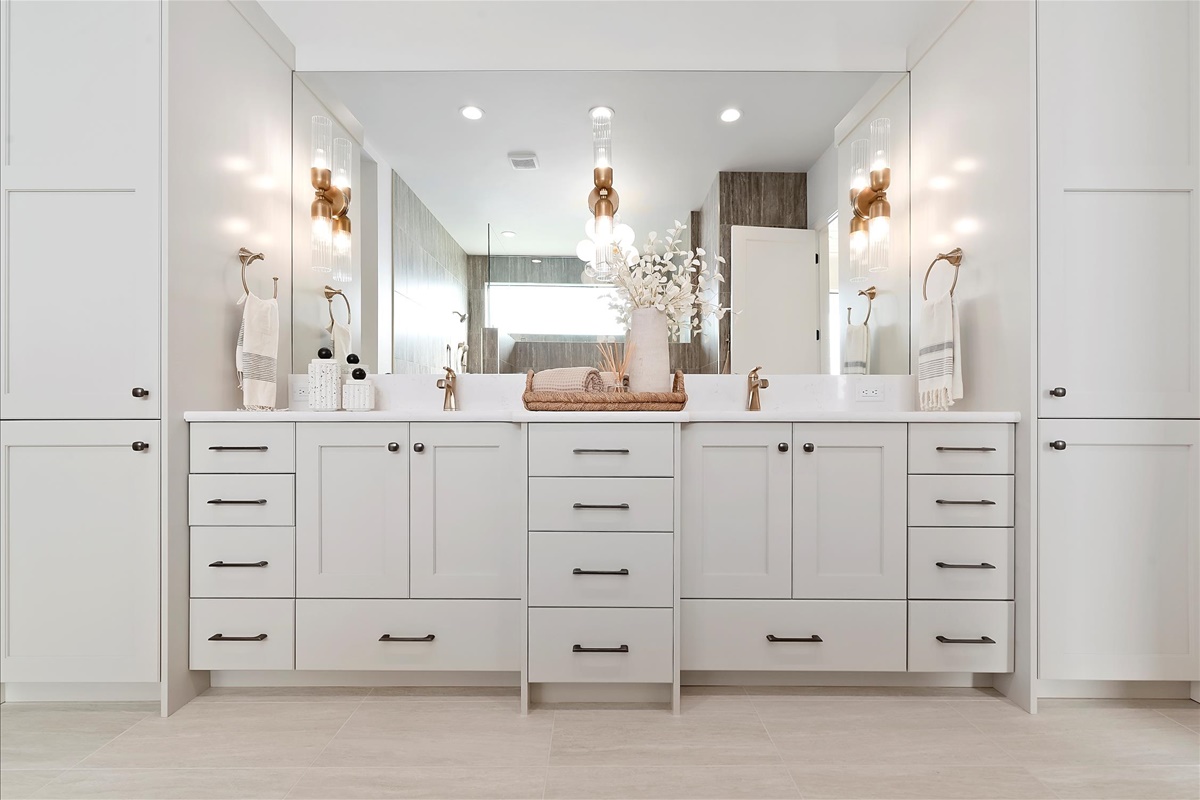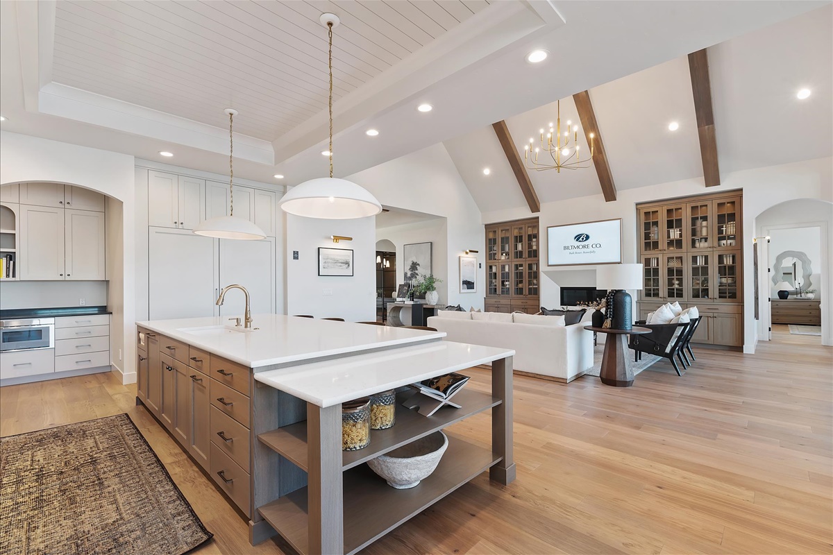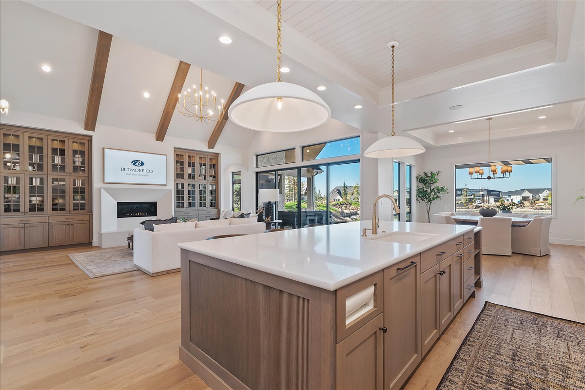 Welcome to The Presley – Biltmore Company LLC’s Fall Parade of Homes, a stunning waterfront residence and the largest single-story floorplan in Terra View! This luxury residence features vaulted ceilings in the great room, bonus room, and primary suite, creating an airy, spacious feel throughout. The gourmet kitchen is equipped with premium Thermador appliances and a show-stopping butler’s pantry. The primary suite includes his and her closets, with a hidden closet behind his side, and a spa-like ensuite featuring heated tile floors, a zero-threshold tiled shower, and a freestanding soaker tub. Guests will love the private suite with its own ensuite bathroom. The bonus room features a wet bar and an attached home gym with scenic views of the water. Enjoy the oversized garage spanning 1,770+ sq-ft with a 45’ deep RV bay and EV charging station. Relax or entertain on the expansive covered patio overlooking the peaceful waterfront. A truly exceptional home in every detail.