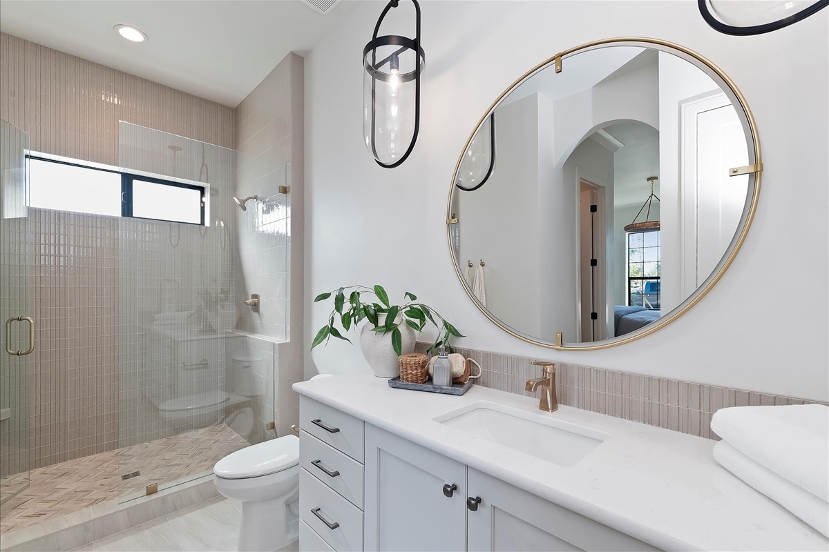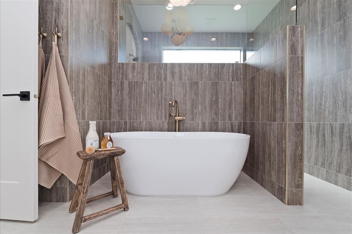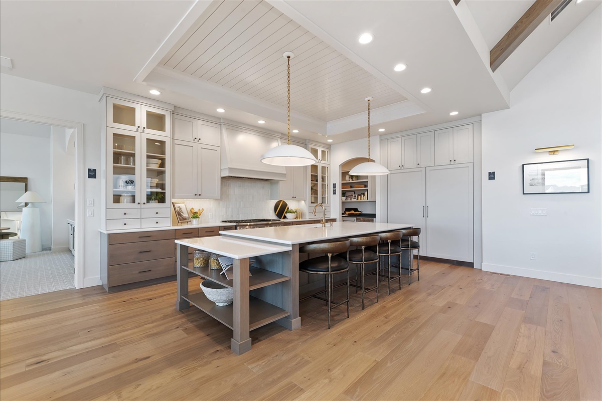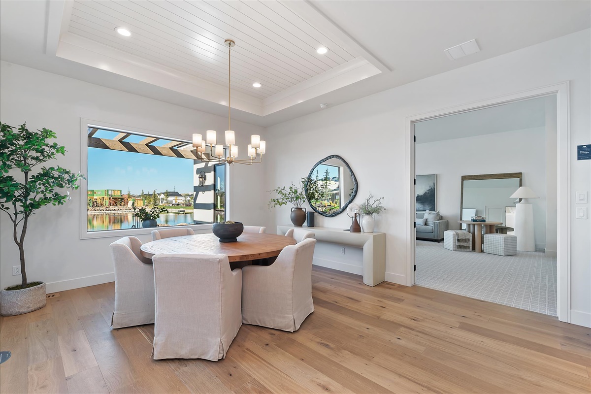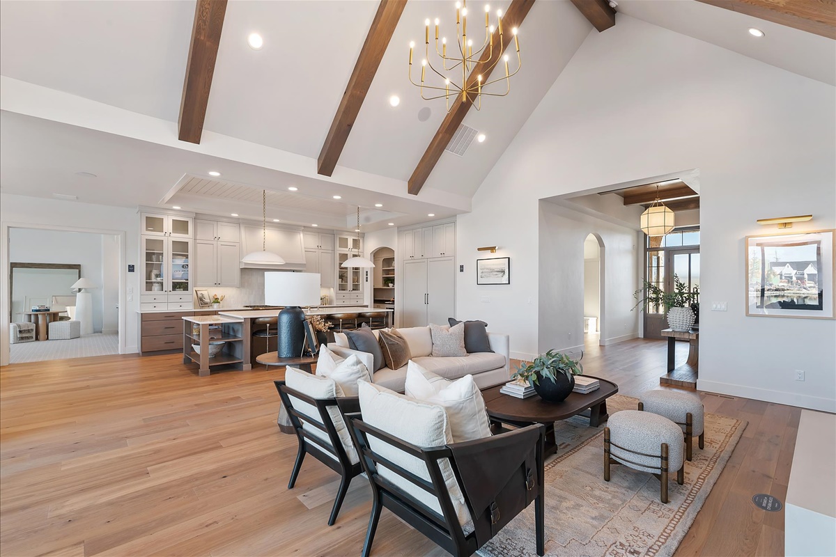 Welcome to The Presley – Biltmore Company LLC’s Fall Parade of Homes, a stunning waterfront residence and the largest single-story floorplan in Terra View! This luxury residence features vaulted ceilings in the great room, bonus room, and primary suite, creating an airy, spacious feel throughout. The gourmet kitchen is equipped with premium Thermador appliances and a show-stopping butler’s pantry. The primary suite includes his and her closets, with a hidden closet behind his side, and a spa-like ensuite featuring heated tile floors, a zero-threshold tiled shower, and a freestanding soaker tub. Guests will love the private suite with its own ensuite bathroom. The bonus room features a wet bar and an attached home gym with scenic views of the water. Enjoy the oversized garage spanning 1,770+ sq-ft with a 45’ deep RV bay and EV charging station. Relax or entertain on the expansive covered patio overlooking the peaceful waterfront. A truly exceptional home in every detail.